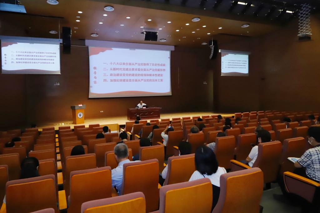 本站讯(通讯员 刘旸 摄影 郭程)为进一步开展好“迎盛会、铸忠诚、强担当、创业绩”主题学习宣传教育实践活动,深入学习领会全面从严治党要求,8月23日,天津大学举办校院两级党委理论学习中心组辅导报告会,南开大学马克思主义学院张健教授作题为“深入推进全面从严治党向纵深发展,以伟大自我革命引领伟大社会革命”的辅导报告。校、院两级党委理论学习中心组成员在双校区同步参加报告会。会议由校党委副书记雷鸣主持。