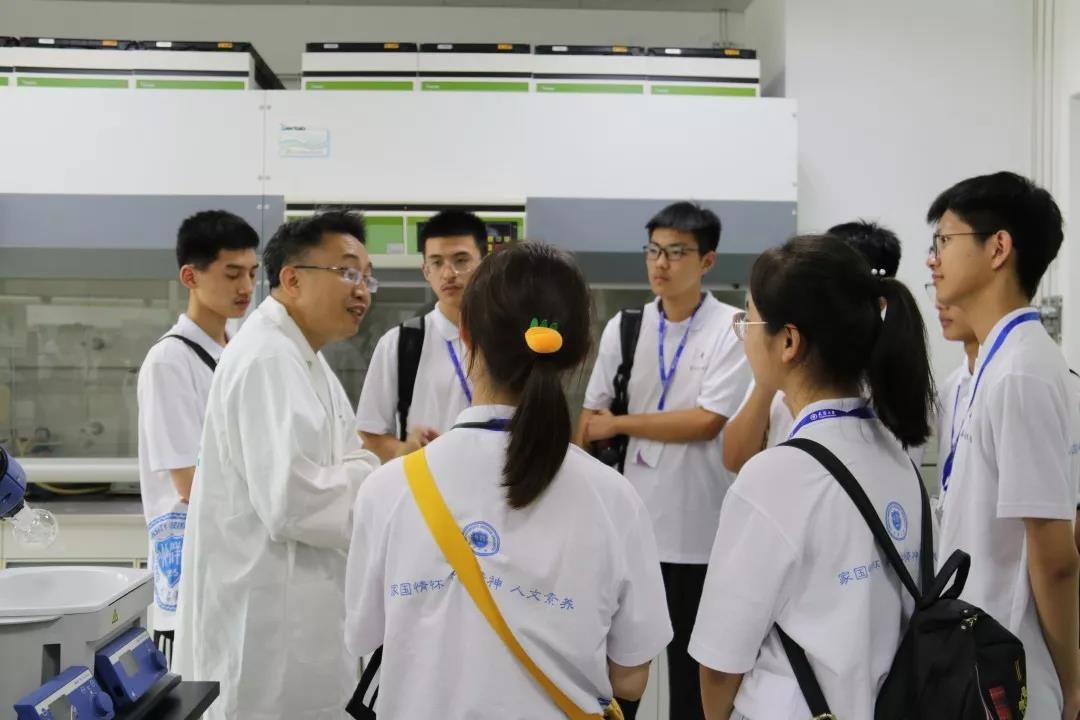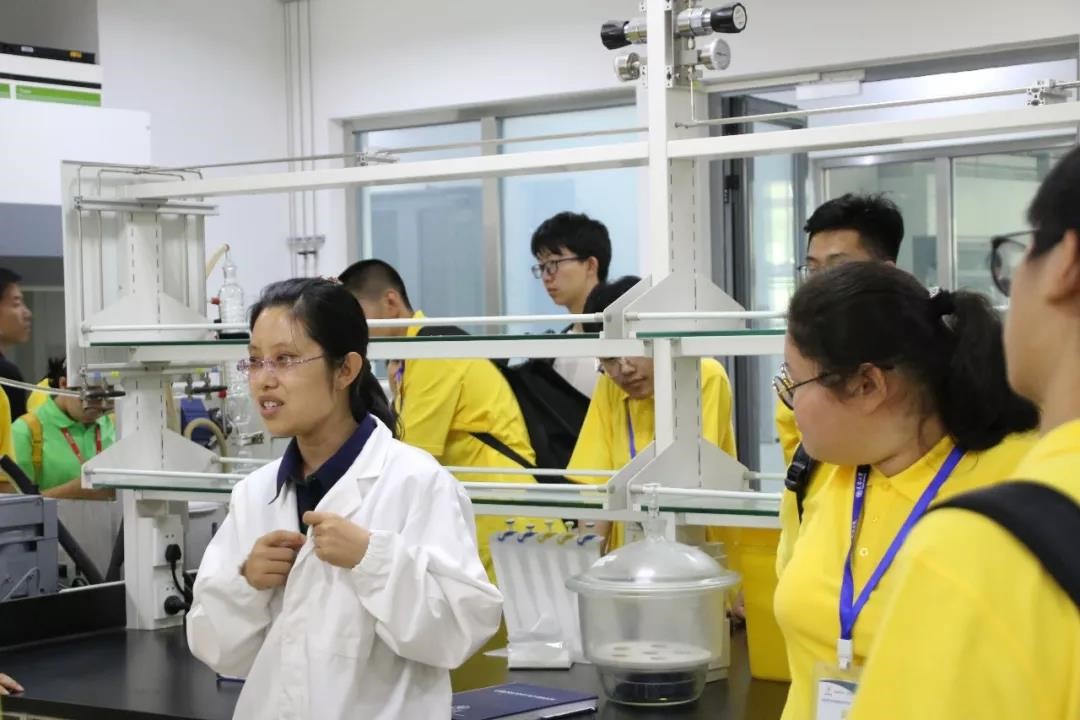 营员们走进药学院实验室,从桌子的去角处理到疏散出口的外推门设计,从90分钟烧不透的加厚玻璃到安全委员会的不定时检查,实验室内规范细致的安全措施,无不让营员们赞叹不已。2014年药学院入选国家外专局、教育部联合推出的“高校国际化示范学院推进计划”,从全球招聘了一批高水平师资,包括诺贝尔奖获得者弗雷泽教授及其团队,同时实行本硕博贯通的全英文教学模式。在工作人员的耐心讲解下,营员们了解到天津大学药学院借鉴欧美高校的运行模式,引进国际先进的教育理念,实施独特的药学人才培养方案,努力与国际一流教育水平相接轨,为学生们未来的发展打下坚实的基础。