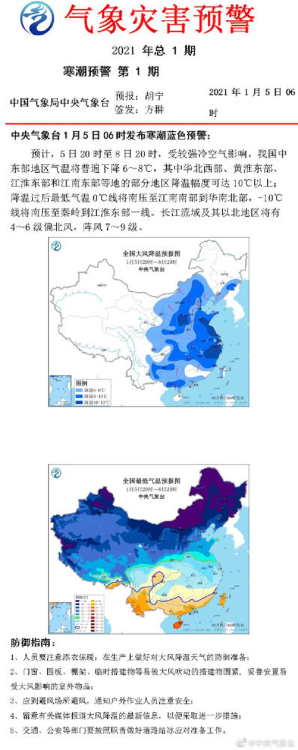 本站讯(记者赵晖 焦德芳 摄影陈晓金)2021年伊始寒潮来袭。5日,天津市气象台发布寒潮蓝色预警信号:受强冷空气影响,预计6日凌晨到8日,天津地区将出现寒潮和大风天气。此次降温创入冬以来气温新低,将刷新30年极端最低气温值。