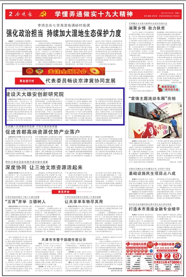 在国家京津冀协同发展战略实施过程中,天津大学主动融入、做好服务,学校已经成立了“天津大学雄安创新研究院”,作为天津大学常驻雄安新区机构。“下一步,我们将重点建好天津大学雄安创新研究院,全方位融入雄安新区建设。”李家俊说,今年将推动同雄安新区全面战略合作的落地和深化,发挥建筑、环境等相关学科优势,继续做好与城市建设规划、生态环境保护和治理、能源综合利用等相关的科技项目服务,继续深度参与雄安新区的绿色智慧新城和宜居生态城市,不断取得新成果新进展。积极引导科技、人才等创新要素向雄安新区集聚,加快建设高水平科技研发平台和科技公共服务平台,积极参与建设在雄安新区布局的国家级平台,支持新区创新驱动发展。