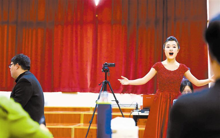 据介绍,今年天津大学高水平艺术团招生项目为声乐类美声唱法,为天津大学北洋合唱团选拔在声乐方面具有艺术特长的考生,计划招生11人,总报名人数近300人。测试包含文化课测试和艺术测试。文化课测试学生语文、数学、英语三门基础课程的掌握情况,艺术测试内容为自选曲目、视唱和听音模唱三部分,考察考生的基本功、视唱、艺术表现力等。