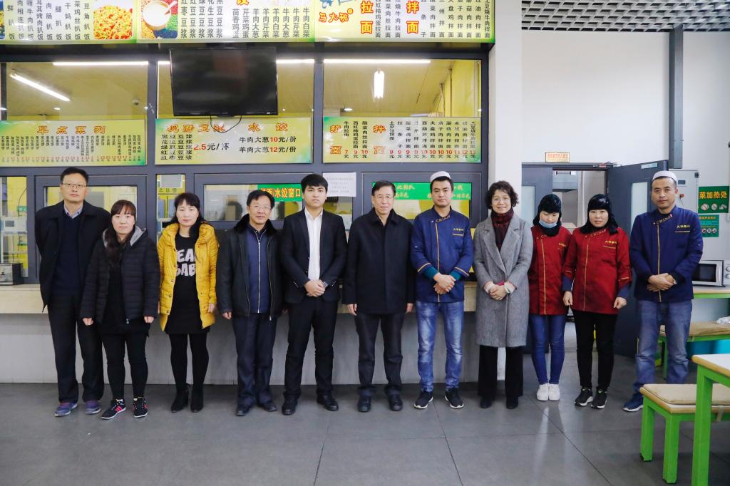 在清真食堂,李家俊亲切慰问了坚守一线工作岗位的后勤员工,给他们拜年,感谢他们为保障寒假期间师生膳食正常运转的辛勤付出。