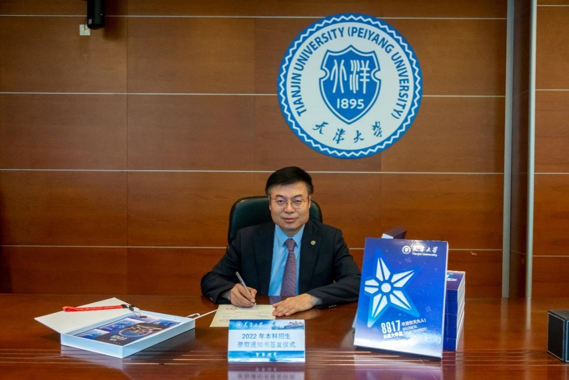 本站讯(记者刘晓艳 通讯员赵宇辰 图片丁宇)“杨卓然同学,祝贺你成为一名光荣的‘天大人’。”2022年7月11日,天津大学校长金东寒郑重地在编号为“001”号的本科生录取通知书上签下自己的名字,2022年首批本科生录取通知书也承载着祝福和期冀,陆续寄往全国各地新天大人手中。