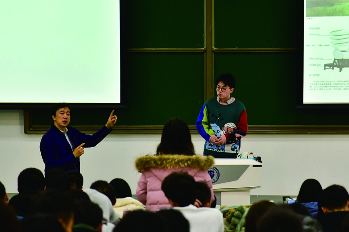“五育并举”——“五育”指“德、智、体、美、劳”的教育。在大数据、人工智能等迅猛发展时期,我们需要培养能够将科学与艺术融会贯通的“新工科”人才,服务国家产业转型升级。在新时代人才培养需求下,《设计与人文——当代公共艺术设计》课程结合生态这一被广泛接受的主题,以丰富在线资源为基础,以“通专融合”为目标,活用翻转课堂工具,通过成果导向、开放评价的设计教学,达到所有专业同学都能完成的完整的可测量的认知领域高阶目标的生态公共艺术设计方案。同时该课程还注重培养学生的动手能力和创意思维能力、团队协作能力等,力求实现“五育并举“。例如,该课程在2017年获得天津大学教学成果奖二等奖等,证明了该课程“五育并举”教学的可实施性。