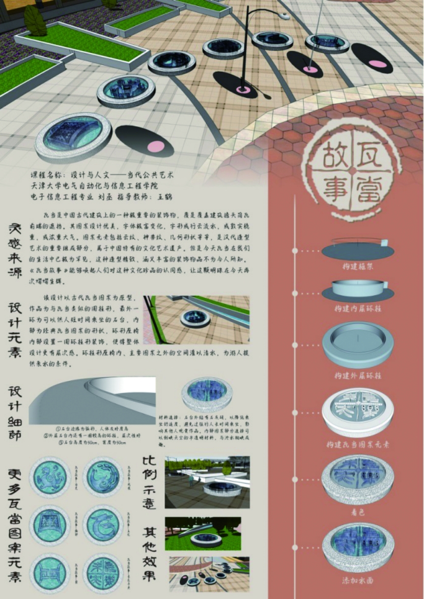 该课程借助移动互联技术的进步,成功探索将艺术专业教育最新成果融入普通高校通识教育的路径,改善人才培养机制,为社会主义建设培养合格人才。该课程的考核形式之一是独立完成一个公共艺术设计方案,要求学生坚持以人为本的设计理念,强化作品对社会服务意识,提升作品服务社会的能力。这也是高校美育工作的重点任务之一。