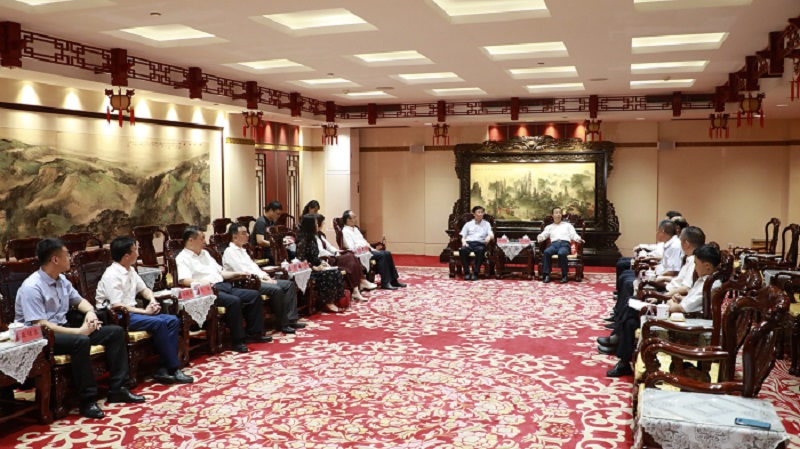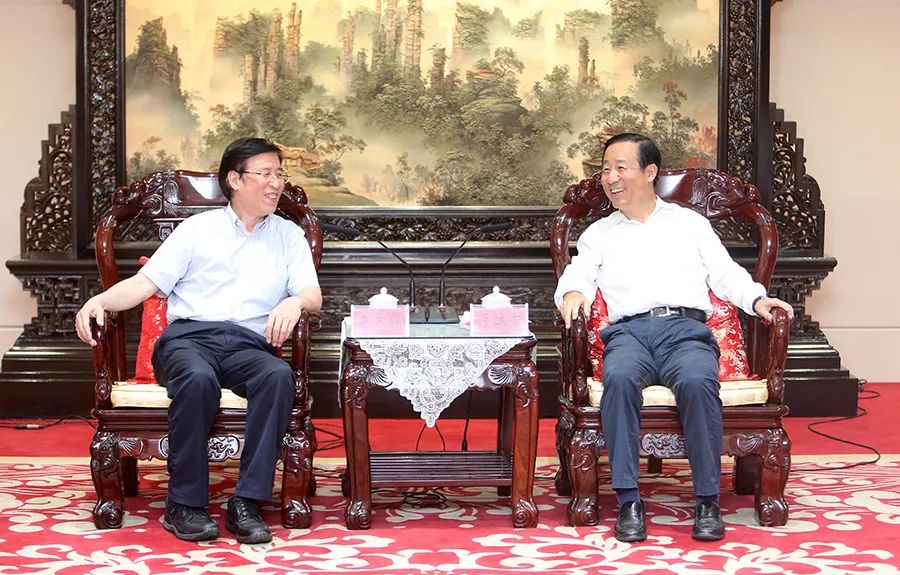 本站讯(记者赵晖 摄影丁宇) 8月14日,湖南省省委副书记、省长许达哲会见了天津大学党委书记李家俊一行。天津大学副校长胡文平,党委副书记雷鸣,天津校友会会长刘毅,湖南校友会会长汪晓兵,党办校办、科研院、国际交流与合作处、校友与基金事务处、经管学部等有关部门负责同志参加会见。湖南省副秘书长、办公厅主任陈仲伯,省政府副秘书长季心诠,省教育厅厅长蒋昌忠,省科技厅厅长童旭东等相关负责人参加会见。
