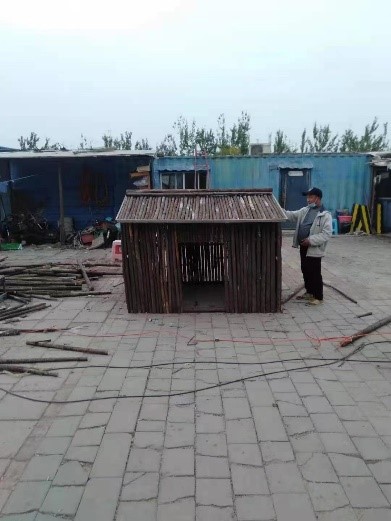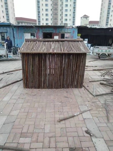 北洋园校区分别有麻鸭、绿头鸭还以及两只大白鹅,我们准备建造四间小木屋暖房为鸭子和大鹅提供越冬场所。小木屋暖房使用校园树木修剪掉的枝干搭建而成,并使用校园芦苇、马蔺叶作为其防水屋顶,不但对校园绿化废弃物进行再次利用,也为鸭子、大鹅提供了越冬场所。(如图)。