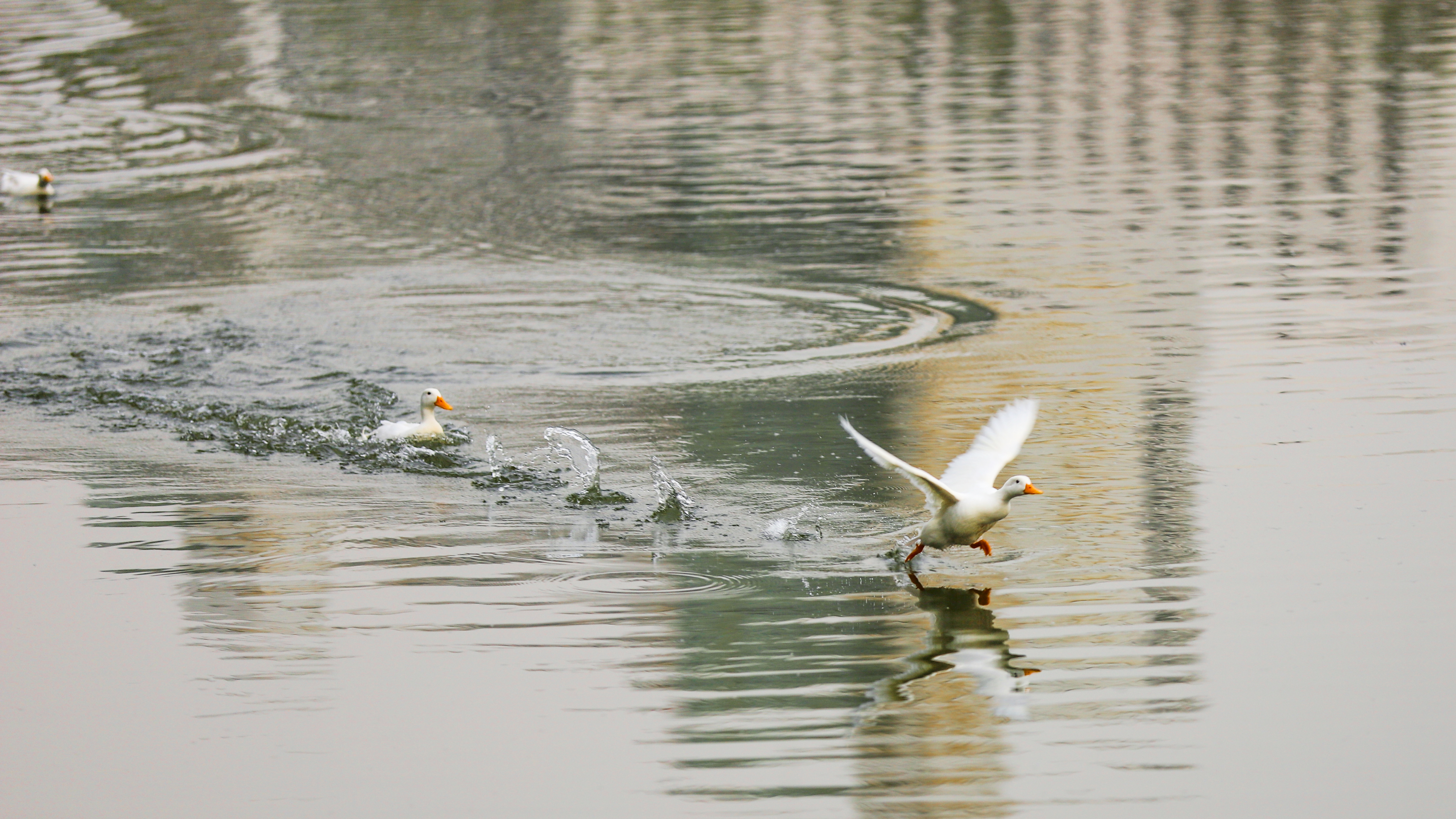 Q:湖冰封后鸭子们怎么过冬?吃什么?喝什么?