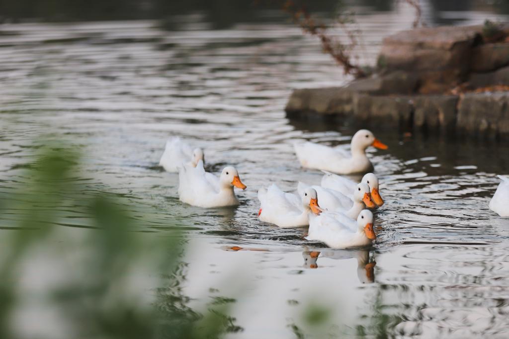 食物充足,住房宽敞,还有师生们的关心,天大园子里的鸭子都是“幸福鸭”~