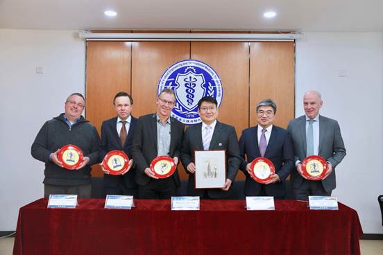 座谈会后,明东、屈宁、H.J. Hoppen、J. W. Graaf、J.F.C.S. Klerken分别代表天津大学医学部、格罗宁根大学医学中心W.J.Kolff研究院、汉斯大学生命科学与技术研究院、萨克逊大学人力资源管理与应用心理学院、荷兰Novamedik生物研究有限公司签署了合作备忘录,并互赠了纪念品。