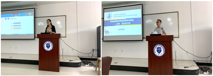 海洋学院副院长巩乐做了题为《学院层面教育质量管理体系建设:思考、理念和行动》的报告。他从国家、学校、学院层面分析了体系建设的重要意义,并根据院级“样板间”的建设情况,介绍了学院质量管理体系的建设理念、目标和要求,展示了工作中形成的质量手册、程序文件及信息化建设情况,分享了教育质量管理体系有力助推学院事业发展的成果。