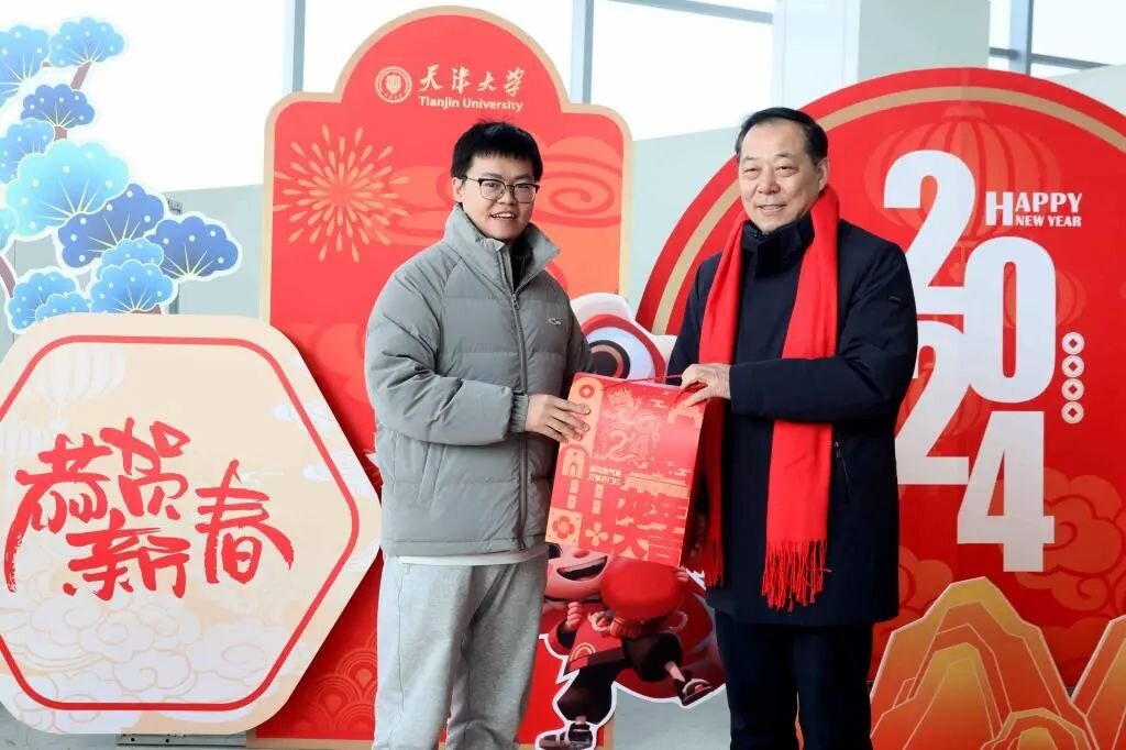 当天,天津大学双校区同时开展留校学生迎新春文化活动。这是学校延续20余年的优良传统。记者在现场看到:学校特意为同学们准备了新年服装和年俗布景,邀请专业摄影师、化妆师为同学们拍摄新春写真,用光影记录下美好时刻。天津大学党委书记杨贤金、校长金东寒来到活动现场与大家亲切交谈,详细了解同学们的留校安排、生活学习情况和各项需求,祝福大家在新的一年万事如意、龙马精神。校领导还为同学们发放新春大礼包并合影留念。