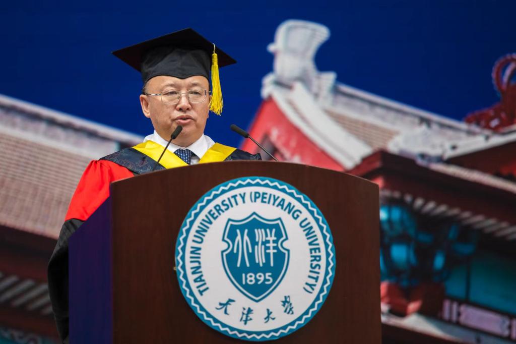 “向全体毕业生表示热烈祝贺,向今天回家的年轻校友们表示诚挚的欢迎,向悉心指导你们的老师和关心支持你们的家人表示衷心的感谢!”中国工程院院士、天津大学校长金东寒向毕业生致以热情洋溢的祝福,希望他们能够涵养“天大的气韵”——古与今交融的大学之气、刚与柔交错的大学之灵、动与静交织的大学之韵。金东寒嘱托全体毕业生离开校园后要继续做好一名“天大人”:做天大人,要有天大志,立志做对祖国和人民有用的人,只要心怀祖国和人民,就可以成为所扎根热土上的先锋、所服务人民心中的英雄;做天大人,要有天大情,懂得感恩的真谛并能知恩图报,要感谢每一段成功与失败的经历,练就百折不挠的韧劲,做一个用自己的光芒去照亮他人前路的“发光者”;做天大人,要有天大勇,“国家对你们有期待,学校对你们有责任,社会对你们有要求。日后,在风雨来临之际,希望你们不害怕、不退缩,要有迎难而上的决心,更要有为他人遮风挡雨的勇气!”