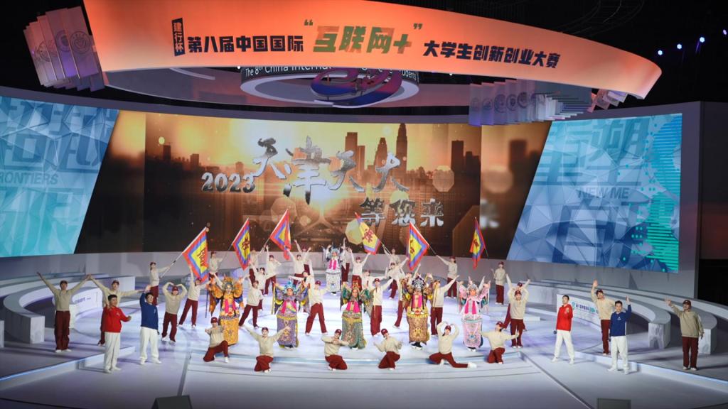海纳百川,天津是包容的天津。天津是北方重要港口城市,向海而行,包容天下。“天津三分钟”主题为《敢闯会创天津卫》,聚焦大赛主题“我敢闯 我会创”,以传统与现代对话的方式,以青年人的视角和天津人的幽默,呈现锐意进取、开拓创新的天津故事。舞台上天大的学生们、天津的青年们边舞,边唱,将京剧、快板、相声等地方曲艺,与现代说唱、舞蹈表演、舞台视频等艺术形式进行融合。用天津的活力与“哏儿都”的幽默感染了现场观众。中国国际“互联网+”大学生创新创业大赛是全球最大规模的“双创”盛会。这样的盛会与青春、进取的天津一定会交响出最美的乐章。