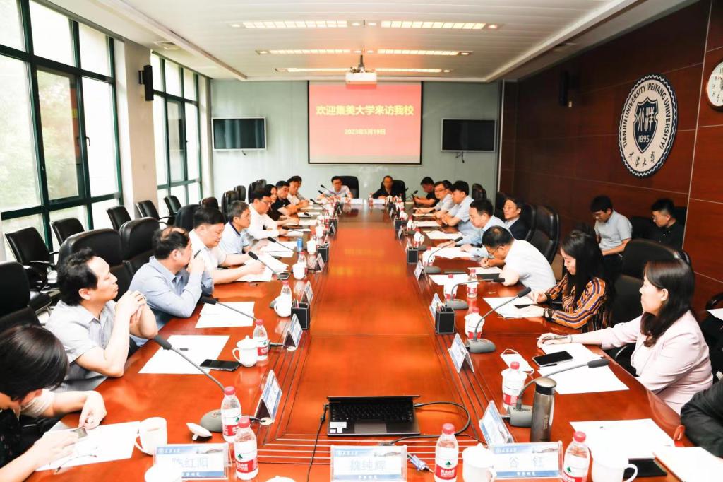 集美大学学校办公室、发展规划处、国际合作交流处、学生处、人事处、教务处、研究生院、科研处、创新创业中心、校友会、轮机工程学院、海洋装备与机械工程学院等单位负责同志,天津大学党办校办、人事处、学工部、发展规划处、教务处、研究生院、科研院、合作办公室、国际处、校友与基金事务处、校团委、建筑工程学院、药学院、医学部等单位负责同志陪同调研并参加会见座谈。