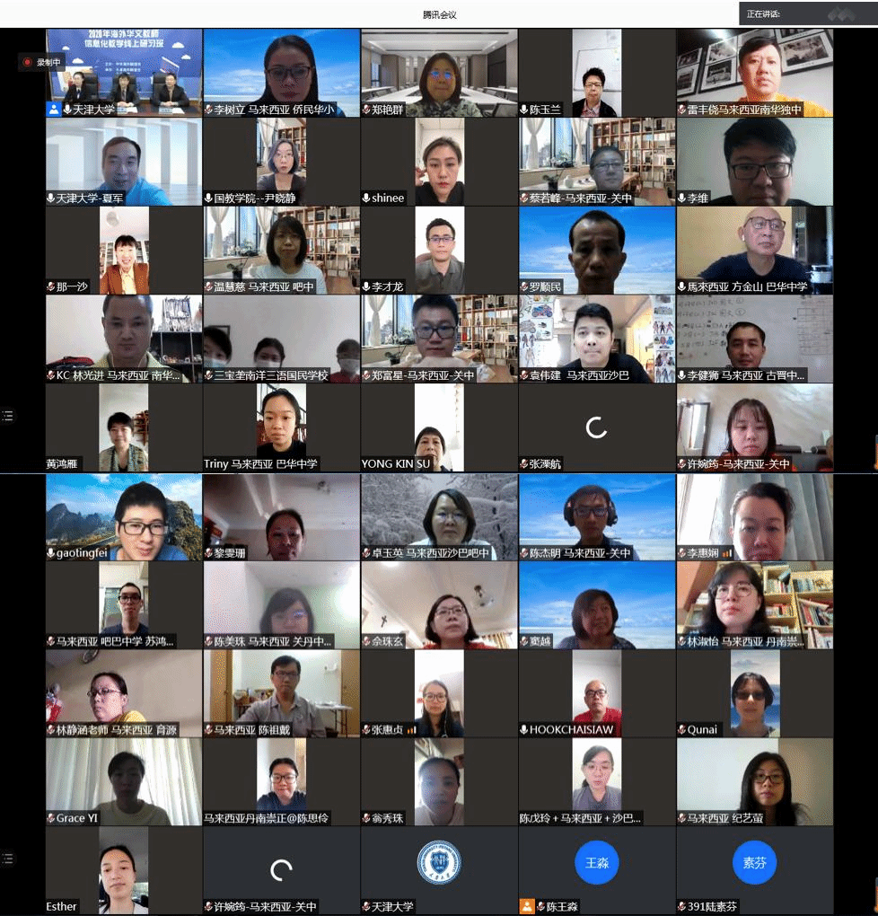 本次华文教师线上研习班是天津大学面向海外华文教师首次组织的线上培训项目,培训时间自11月28日至12月24日,从华文教育信息化的理论及实践技术出发,旨在帮助海外华文教师应对疫情形势下线上教学过程中面临的问题和困难,掌握线上华文教学的相关知识和技术,共同探索疫情下海外华文教育的新模式。