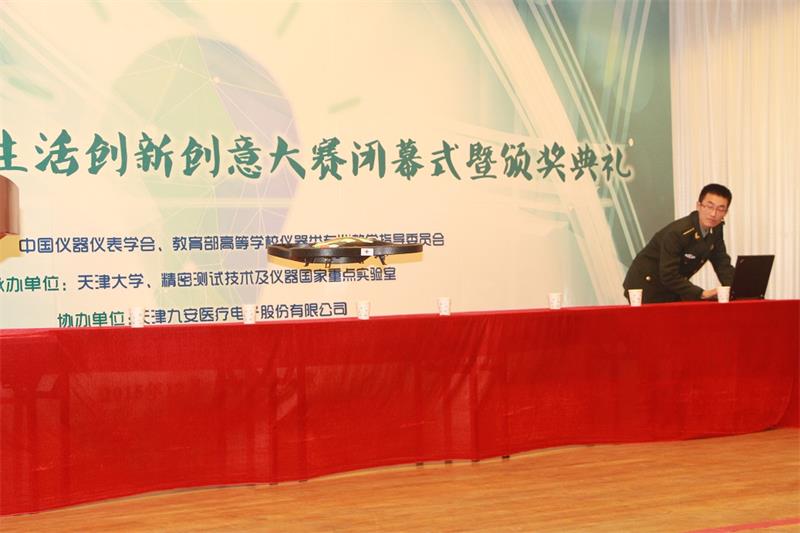 本站讯(通讯员 姚旺)2015年全国大学生智能生活创新创意大赛于12月5日至7日在天津大学举行了最终决赛并落下帷幕。来自全国各大高校的59支学生代表队参与了最终决赛,经过现场的激烈角逐和评委们的严格审查,中国人民解放军装备学院的“智能急救飞行器”摘得桂冠,获得了此次大赛唯一的特等奖,并于现场进行了参赛作品的展示。