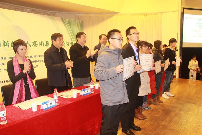 12月7日下午,大赛于天津大学卫津路校区大学生活动中心一层报告厅举行了隆重的颁奖典礼。天津市南开区委书记薛辉,天津市南开区委常委、副区长张勇勤,天津大学党委副书记李义丹,天津市南开区委常委、办公室主任李喜军,天津市南开区委常委、组织部部长王伟,天津九安医疗电子股份有限公司董事长刘毅,天津大学团委书记吕静,教育部高等学校仪器类专业教学指导委员会主任曾周末、副主任陈祥光等出席了颁奖典礼。多所高校和企业的教师、专家和学生代表参加了颁奖典礼。