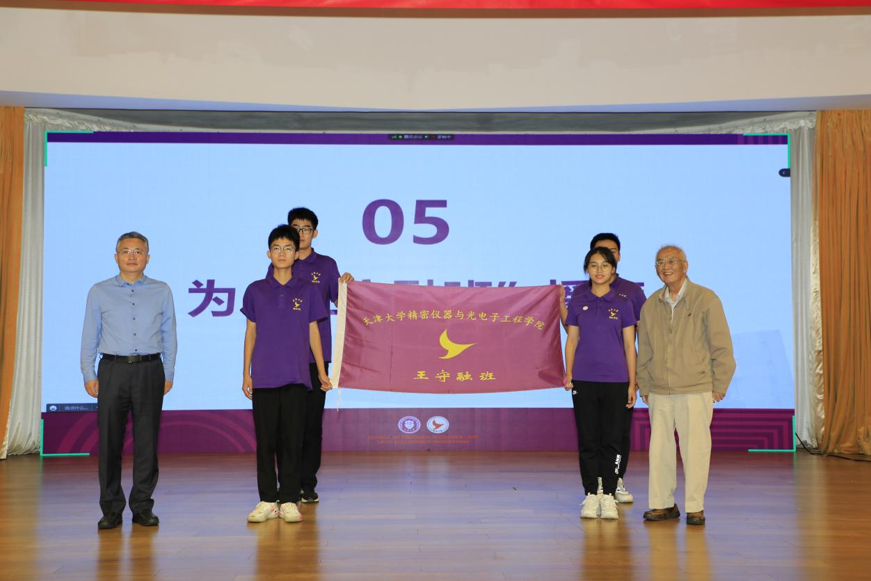 会上,天津大学工程科学实验班被正式命名为“王守融班”,以纪念和彰显天大60年代重点培养的“十八罗汉”之一、“天大精仪”的创办人王守融先生在中国仪器仪表学科教育和技术发展等领域作出的卓越贡献。天津大学副校长郑刚教授、精仪学院首任院长张国雄教授共同上台,为“王守融班”学生授旗。