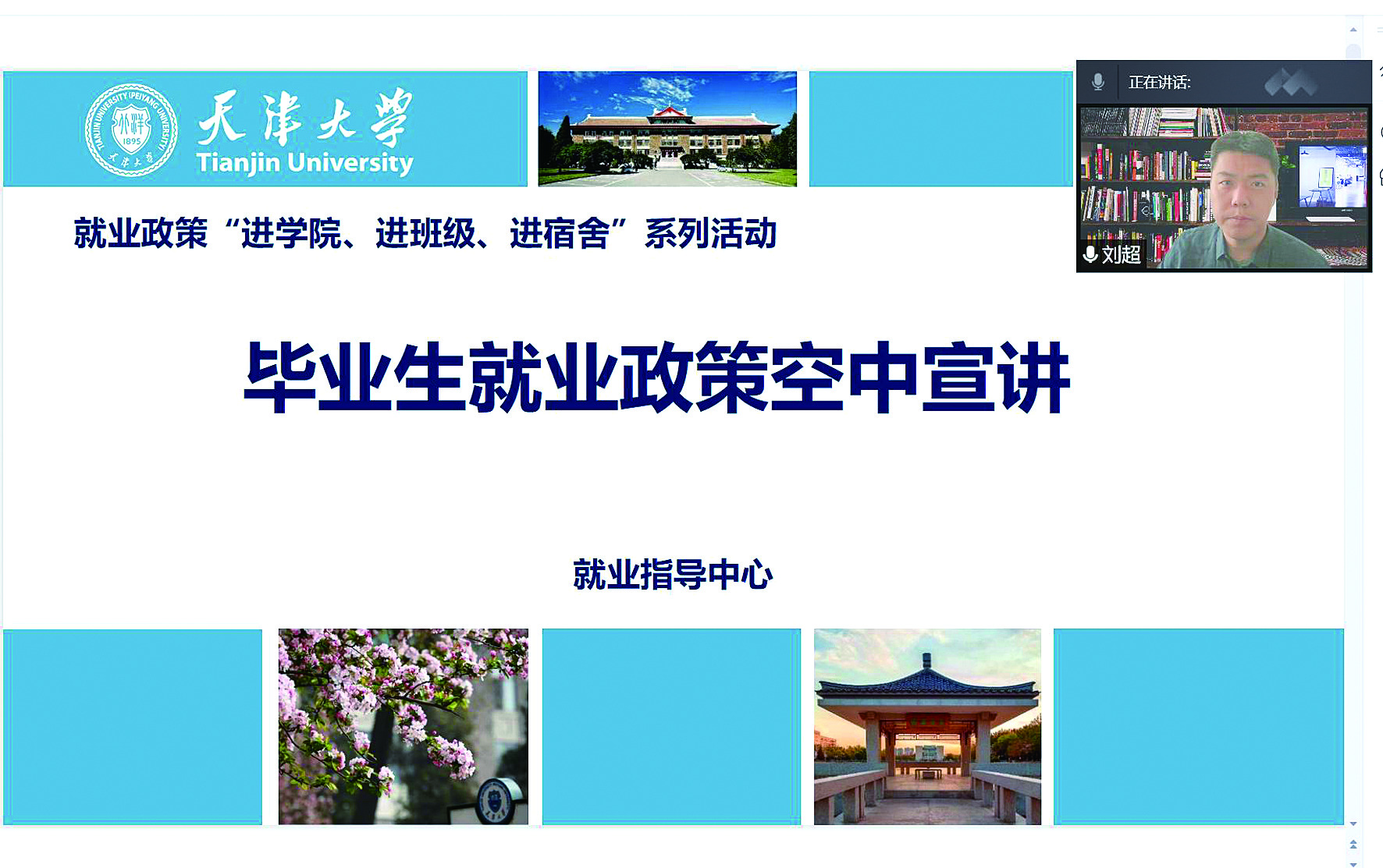 为应对疫情对毕业生就业造成的冲击,我校创新性推进就业“云模式”,发挥信息技术的优势,让互联网成为学生求职的关键舞台。自1月疫情爆发以来,我校已面向毕业生举办了“千校万岗·就业有位来”——天津大学就业服务不断线寒假空中双选会2场及各类云招聘宣讲会百余场。3月25日,学校联合天津市政府妇儿工委、市国资委、市教委等单位举办了千校万岗·“位”你而来——第八届天津市女大学生线上专场招聘会,专门为女生提供更多就业机会。学校就业指导中心还陆续举行了重点央企、行业领军企业、校友单位等系列空中双选活动。“学校坚持疫情期间就业教育不断线,先后为学生开展选调生招考空中课堂、女大学生就业能力提升空中课堂、大学生职业素养提升空中课堂、春招空中训练营等,让疫情封闭期成为成长的黄金期,提升学生的就业能力。”就业指导中心副主任刘超介绍。