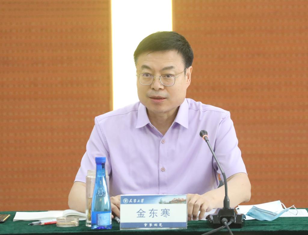 金东寒在卫津路校区毕业生代表座谈会上讲话。他强调党和国家未来的希望全都寄托在广大学生身上。要始终坚守兴学强国的初心和使命,将家国情怀作为自己的精神信仰和前行力量,找准自己的奋斗坐标与发展路径,在为人民美好生活的不懈奋斗中书写人生华章。要始终保持勇立潮头的精神和勇气,时刻铭记矢志创新的追求,主动探索、大胆质疑、勇于创新、不怕失败,通过不断创新成就事业、报效祖国。要始终保持孜孜不倦的态度和韧劲,在面临困境与瓶颈时,守得住初心、耐得住寂寞、抗得住打击,以永不懈怠的精神状态和一往无前的奋斗姿态书写属于自己的时代风华。要始终保持终身学习的动力和习惯,以久久为功的精气神,为全面建成社会主义现代化强国、实现中华民族伟大复兴的中国梦作出更多的“天大”贡献。