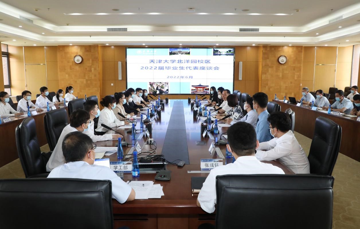 6月13日下午、14日上午,天津大学2022届毕业生代表座谈会分别在北洋园校区1895行政楼A415、卫津路校区科学图书馆一层报告厅举行。校领导杨贤金、金东寒、雷鸣出席。