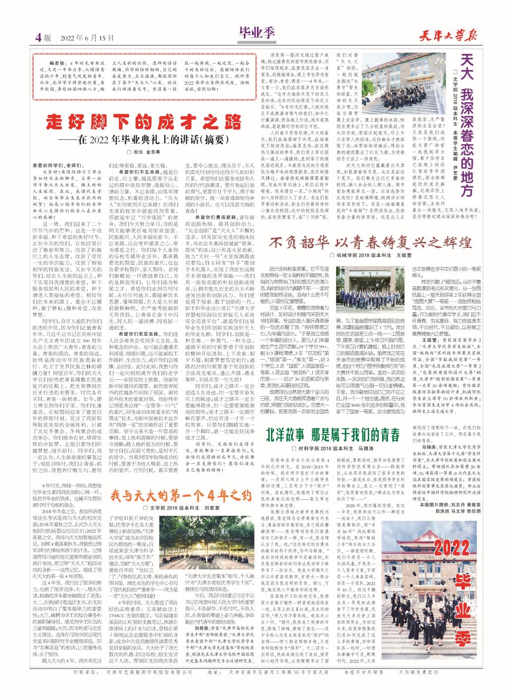 ●走好脚下的成才之路——金东寒在2022年毕业典礼上的讲话(摘要)