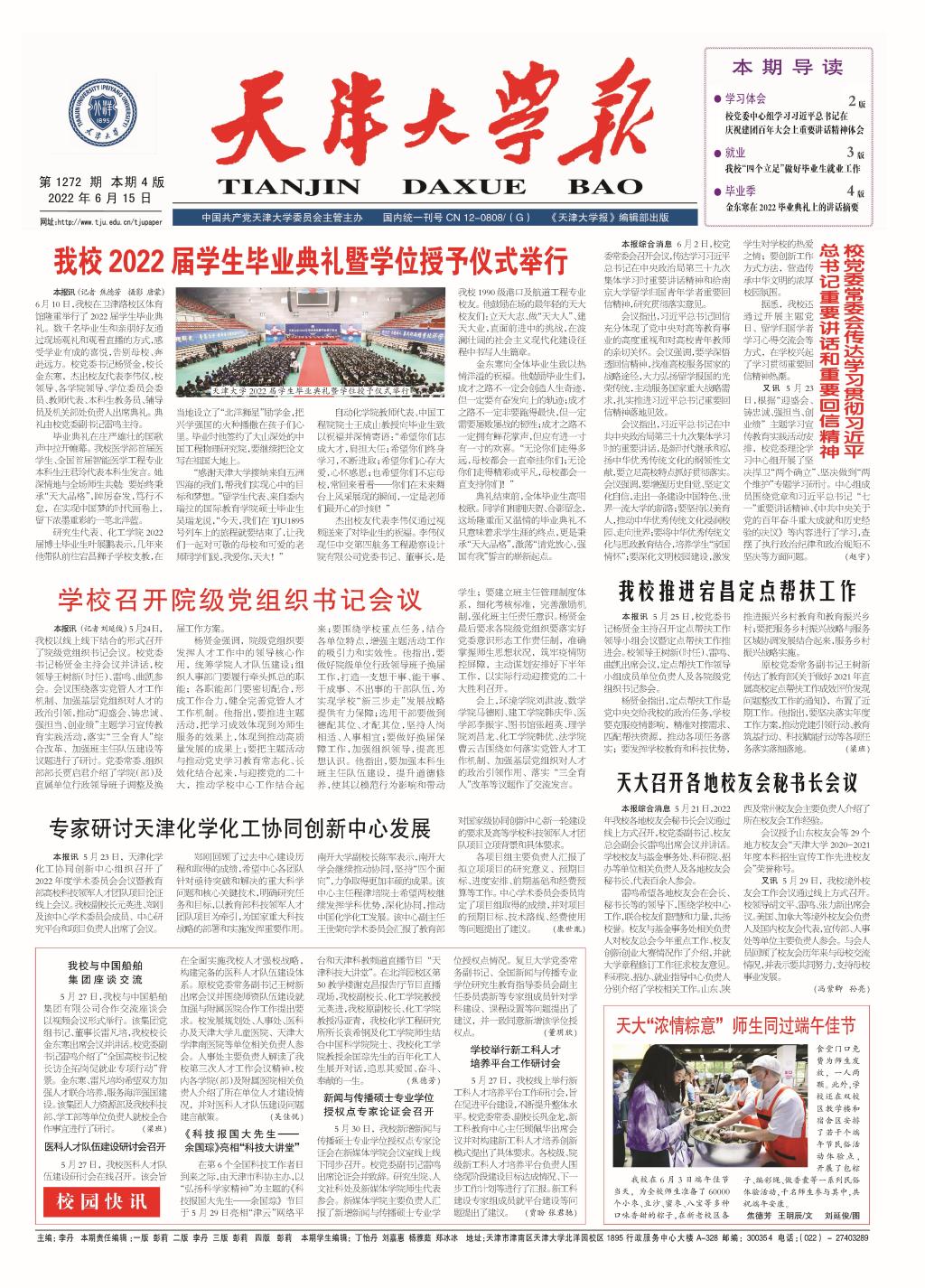 编者按: 4年时光匆匆流过,又是一年毕业季,从懵懂青涩的少年,到意气风发的青年。而今,北洋学子将背起行囊,离开校园,奔赴祖国四面八方,踏上人生新的征程。恩师的谆谆教诲、同学的陪伴相助,自己的奋发努力,点点滴滴,都深深印在了每个“天大人”心底。就让我们伴随着文字,重温着一段段一起奔跑、一起欢笑、一起奋斗的美好过往,感谢陪伴我们的每个人和我们自己。祝所有2022届毕业生踔厉风发,扬帆启航,前程似锦!