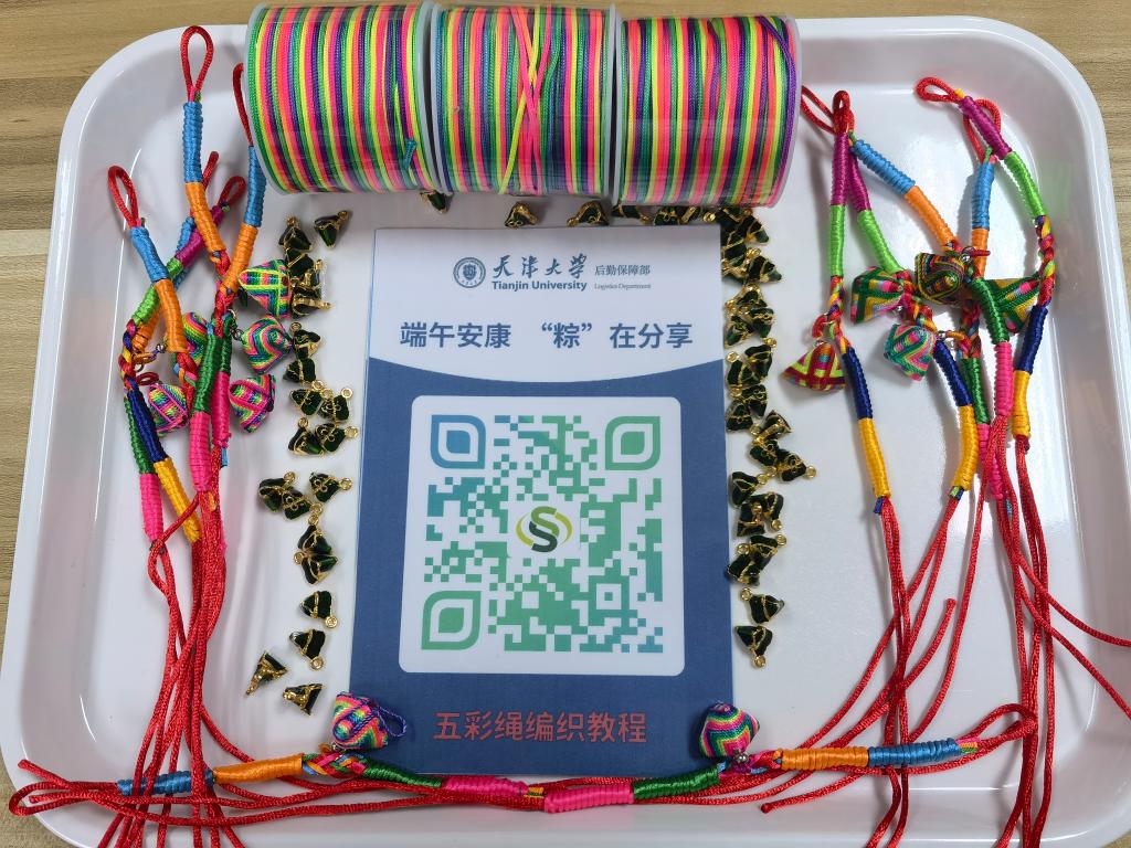 光吃粽子不过瘾,还想体验亲手包粽子、自己编五彩绳?安排!天津大学后勤保障部在双校区教学楼和宿舍区都安排了若干端午节民俗活动体验点,这一天共有上千名同学兴致勃勃参与其中。记者在活动现场看到:洗好的糯米、泡好的粽叶和一颗颗蜜枣已经在桌上摆好。同学们在欢声笑语中包起粽子,没多一会就包好了100多个。化工学院2021级研究生小韩兴奋地表示:“包粽子活动好好玩!其实我是第一次包,自己动手做出来的虽然外观不如卖的好看,但这颗‘天大牌’是我吃过最香最甜的粽子!”