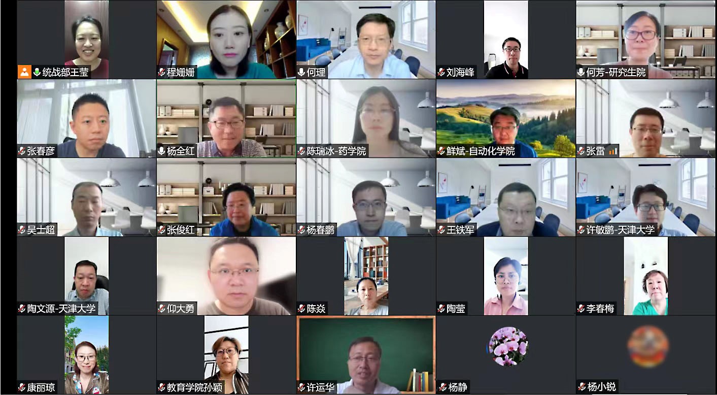 本站讯(统战部供稿)28日上午,天津大学召开留学归国学者学习心得线上交流会,学习讨论《习近平给南京大学留学归国青年学者的回信》和《习近平在庆祝中国共产主义青年团成立100周年大会上的讲话》。来自多个研究领域的20余名留学归国学者参加了学习。他们中有工作30余年的老教授,也有去年刚刚回国的年轻学者,大家共聚一堂分享学习体会。