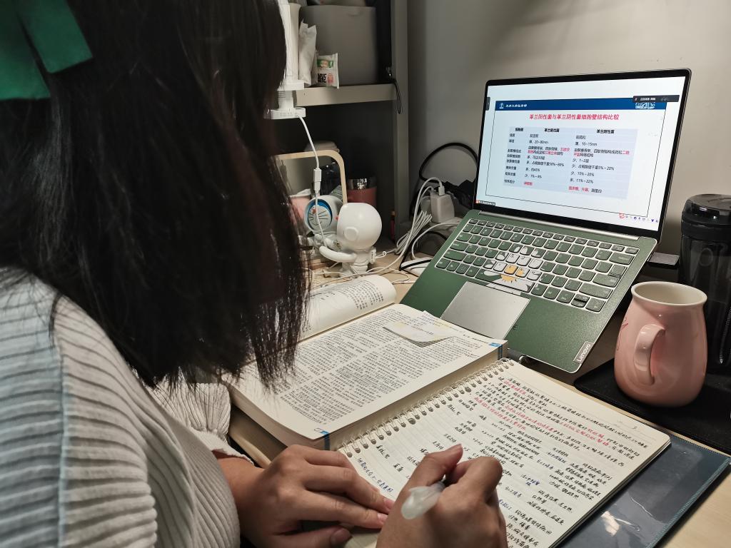 本站讯(记者 董玥欣)清晨八点半,天津大学医学部临床医学专业2020级本科生李梦宜打开电脑,熟练登入腾讯会议,新一天的学习充电又开始了。