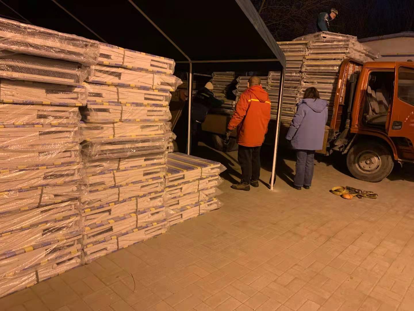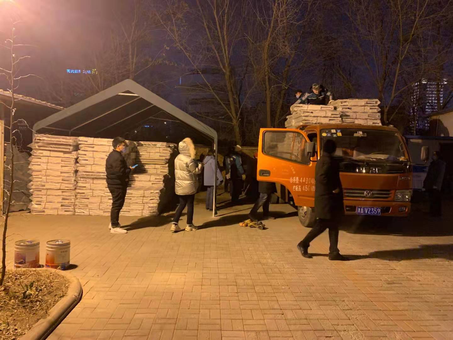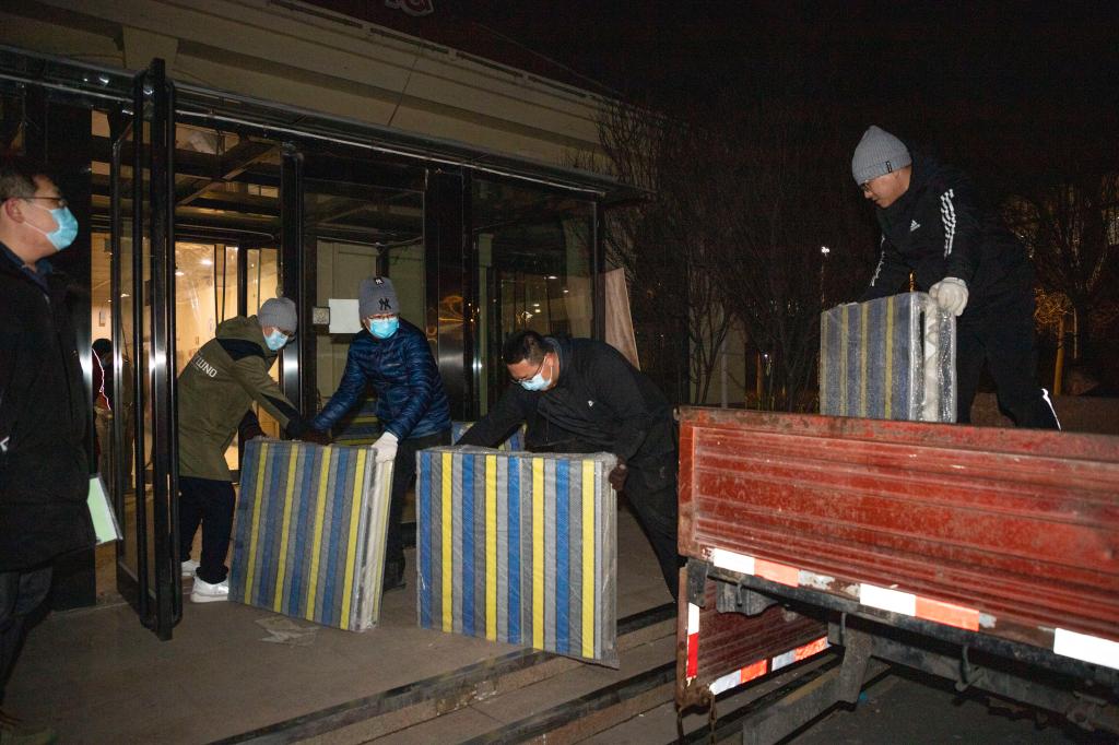 天津大学后勤保障部第一时间认领工作任务,克服当前物资流转不畅的种种困难,迅速采购到500套折叠床和500套被子、被套、床单、褥子、枕头等卧具,又与天津市疫情防控领导小组协调,为运输货车办好卫津路——北洋园点对点通行证,保证畅行无阻。晚20:30,第一批次物资已经发车。