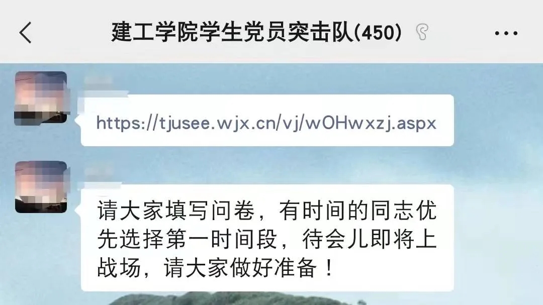 “我们是党员,必须冲在最前面。”前两轮筛查中,志愿者报名链接转到党支书群、班长支书群、年级群后随即被“秒抢秒空”,一些“手慢”的党员同样以党支部为单位,焦急地向学院“请求出战”。短时间内,一支450人学生党员突击队迅速组建起来,面对时间更加紧迫的第三轮筛查任务时,这支党员突击队闻令而动,表现出色,充分发挥了基层党组织的战斗堡垒作用,圆满完成了各项任务。面对感谢,他们说“为人民服务是我们的使命担当”。