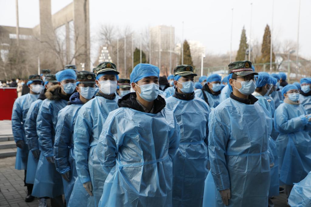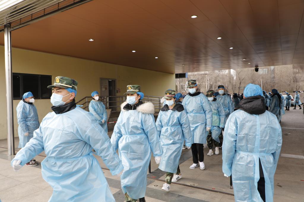 腊月刺骨的寒风中,很多志愿者厚实的迷彩工作服已经被汗水浸透,防护服上留下了大片大片的水雾和汗珠。