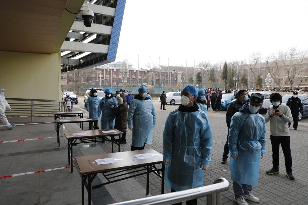 志愿者在核酸检测现场引导组织