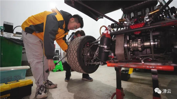 单个零部件性能的提升给团队每个人平添了一份自信,社团的每个成员在此过程中体会到更多的是一种工业化的流程,这背后,不仅需要攻克技术上的难题,还需要很多其他强有力的支持。2018年,社团内部成立了经理组,由学校老师牵头联系相关资源,经理组负责对接资金和技术上的赞助商。尽管老师的帮助让经理组成功拿到了赞助资源,但是在推进过程中,还是会出现一些突发状况,让付杰摸不着门儿。他还记得在上次比赛前两天,潘辰霄慌慌张张找到了他,说是需要紧急加工链轮。而此时,留给车队的时间仅剩下了一天,付杰挨个赞助商打电话,最后,天津本地零部件加工企业接下来这个时间紧任务重的活。该企业连夜赶工,在车队前往襄阳比赛的当天上午,把链轮和备用链轮送到了车队,解了队员的燃眉之急。在赞助车队的同时,像联动机械这样的零配件加工厂也在和学生的接触交流中提升了技术,同时也优化了零配件加工流程。