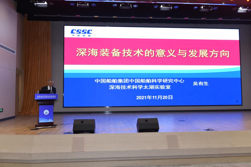 中国工程院院士、太湖实验室主任吴有生致欢迎辞。他在致辞中指出,深海技术科学太湖实验室是中国船舶集团、江苏省和无锡市深入贯彻落实建设海洋强国重大部署和习近平总书记建设国家实验室重要指示,瞄准国家深远海前沿领域布局,承接国家深远海前沿领域重大战略任务,联合国内外创新资源共同建设的重大科技创新载体。成立学术委员会是太湖实验室顺应时势需求、深入推进深远海领域国家战略力量建设的重要举措。