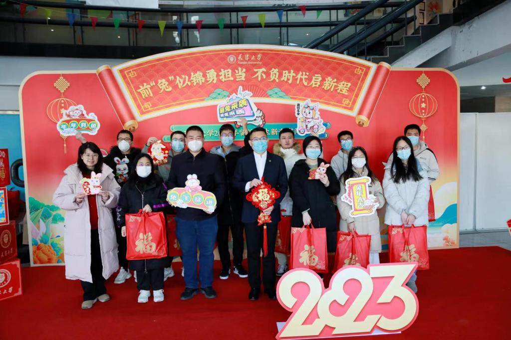 本站讯(记者赵晖 通讯员马天明 摄影丁宇 郭程)大红福字贴起来,拱手拜年祝平安。1月21日,正值农历除夕,天津大学在北洋园校区大通学生活动中心和卫津路校区大学生活动中心开展2023年留校学生新春慰问活动。天津大学副校长明东、党委副书记韩庆华与同学们欢聚一堂、共迎新春,共话未来。