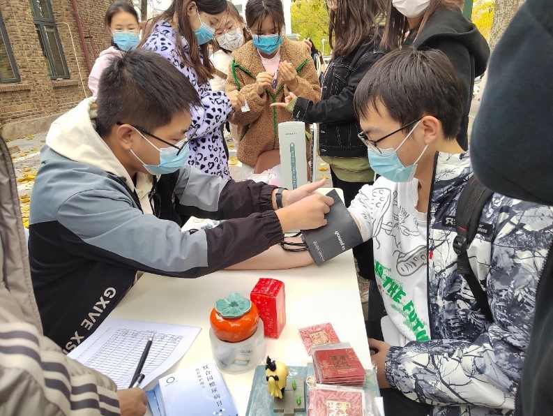 在活动现场,志愿者们为到来的师生发放糖尿病宣传册、组织知识竞答,并开展了测血糖、量血压体验活动,参与师生不仅收获了心意满满的奖品,还加深了对糖尿病相关认识的掌握,加强了对健康生活理念的重视。