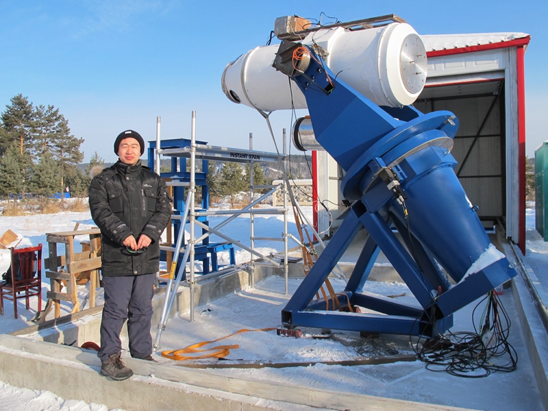 于策在漠河对新一代AST3观测数据分析处理系统进行测试时的照片