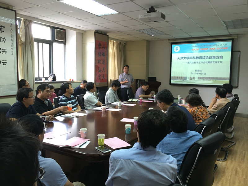 教务处处长白海力作“天津大学本科教育综合改革方案——第八次教学工作会议筹备工作汇报”专题报告。他从改革背景、整体框架、文件解读、会议方案四个方面详细解读了此次本科教育综合改革方案。