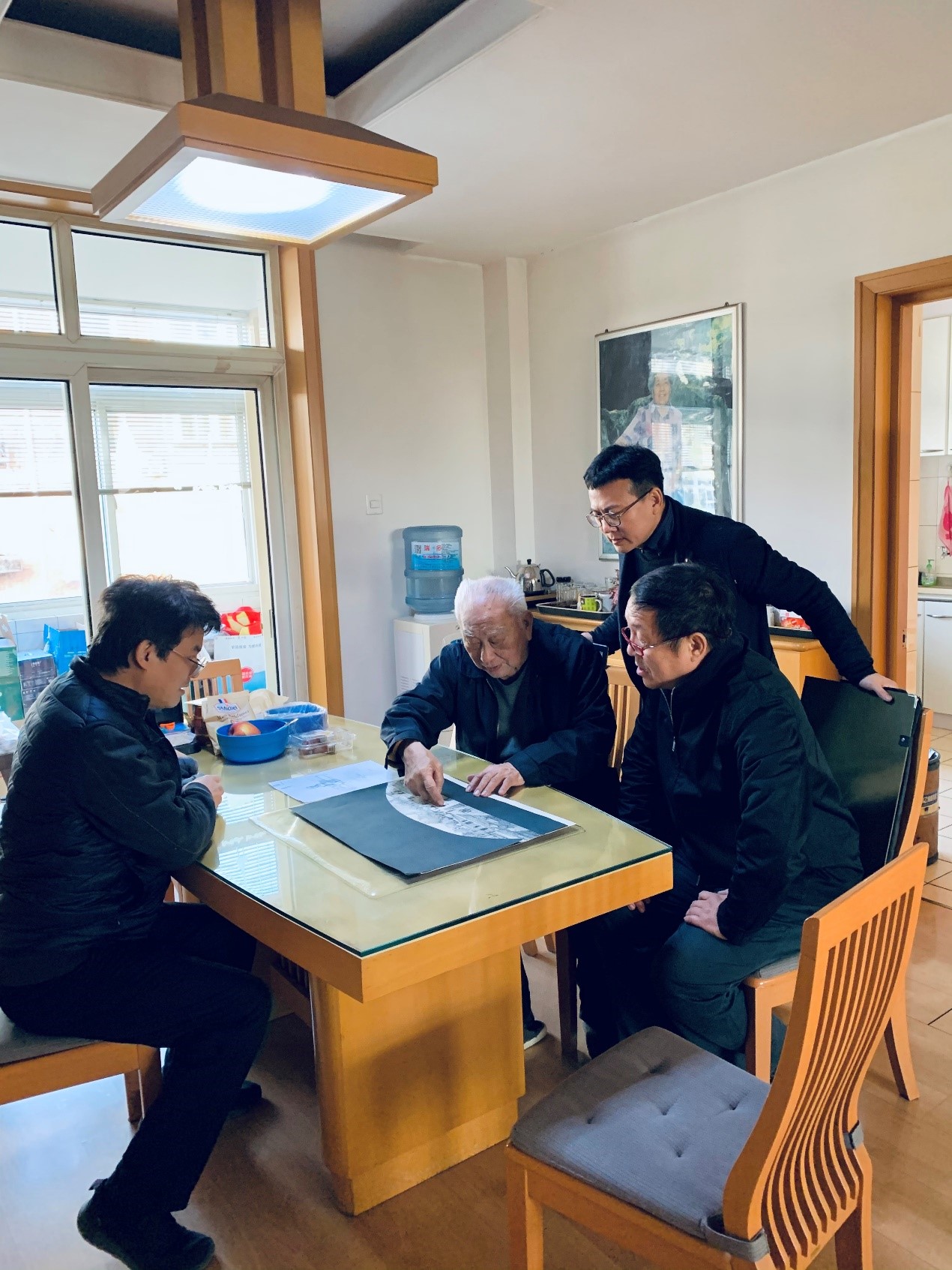 彭一刚和他的弟子崔恺、周恺、李兴钢三位建筑设计大师一起商讨设计天津大学新校区张太雷广场及其雕像事宜。