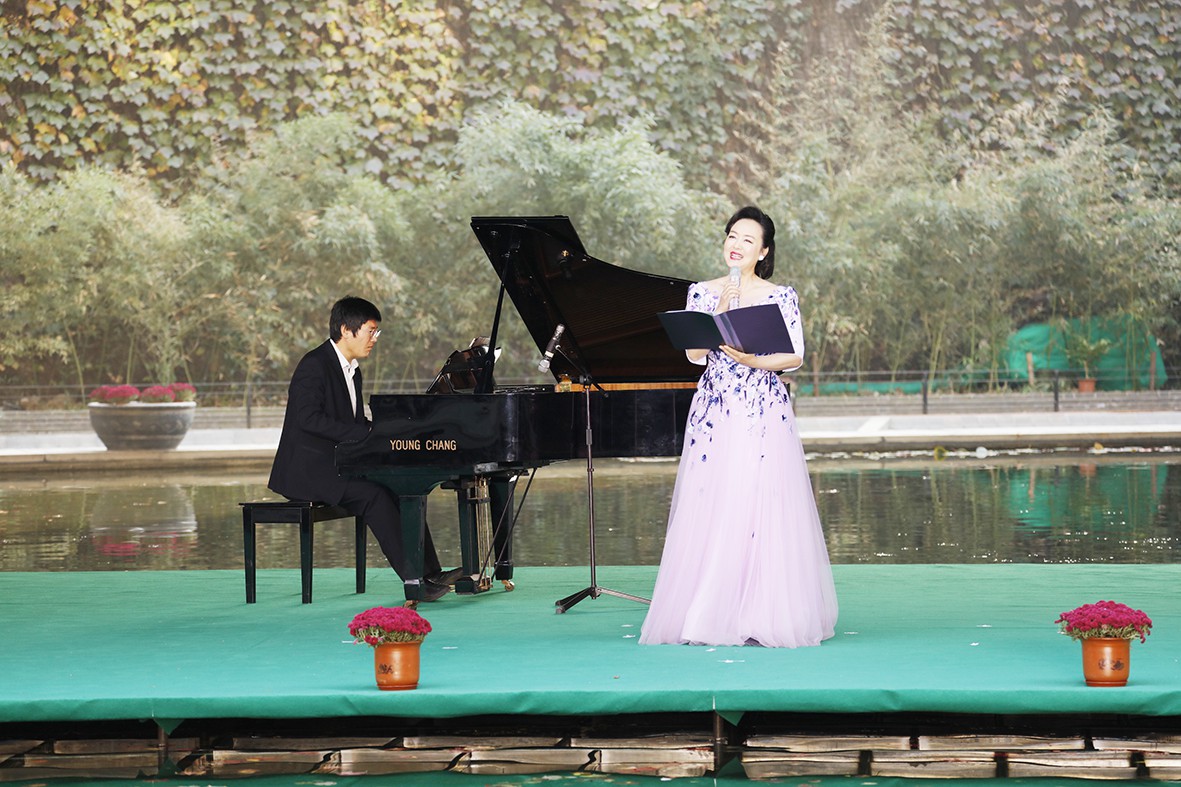 评弹表演艺术家盛小云也从苏州赶来,一曲《枫桥夜泊》恰与现场的红叶、碧水相映照。赵普这次不以主持人的身份登台,而是一展他在古诗文方面的修养,解读并朗诵苏轼的《水调歌头·明月几时有》。指挥家、钢琴表演艺术家滕矢初,则用一首改编自古曲《春江花月夜》的钢琴独奏《夕阳箫鼓》,让全场沉醉在音乐、诗意与大自然的美相互交融的艺术境界中。