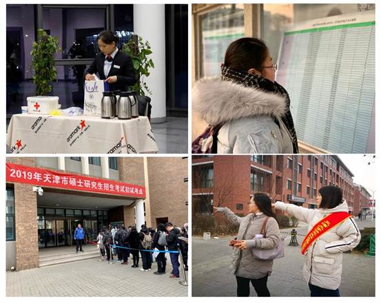加强服务意识,确保服务水平和质量。学校始终坚持以考生为本,想考生之所想,注重人文关怀,彰显天大品格。我校通过学校主页、研招网和微信公众平台提前发布考点公告、考试纪律、温馨提醒等与考生相关信息,方便考生查询考场及安排考试期间就餐休息。同时,对校园考试环境进行了精心的布置,在各楼宇显著位置张贴了考场示意图和注意事项,并安排志愿者进行指引,方便考生顺利找到考场。另外,开放食堂供考生及家长用餐及休息,并提供免费热饮、考试相关文具等,积极为考生营造方便、舒适的考试环境。