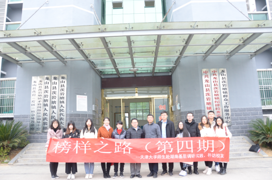 25日下午,师生一行抵达湖南省湘西土家族苗族自治州龙山县茨岩塘镇。龙山县委副书记陈忠耀,县委常委、组织部部长石红梅会见了我校师生一行,介绍了杨苗同志日常工作情况,并给予了高度评价。师生共同与茨岩塘镇政府同志以及选调生校友代表颜薪芳、杨苗开展交流座谈。会上,龙山县委组织部副部长肖剑、茨岩塘镇党委书记向怿文分别介绍了龙山县的基本情况、选调生的培养锻炼情况以及乡镇对选调生的培养工作。作为“全国文明村镇”的茨岩塘镇正在全面推进脱贫攻坚工作,抓党建促发展,坚守“美丽乡村”,烤烟、油茶、茶叶等特色产品在一定程度上增加了当地百姓的收入。已工作两年的选调生颜薪芳汇报了她的工作心得,作为回乡工作的组织干事与党务工作者,她是当地20个村里面,唯一一名驻村女同志。她认为做好乡镇工作,需做到功崇惟志,业广惟勤,严格自律,怀有空杯心态,学好人生这本“无字书”。选调生杨苗介绍了自己工作半年多的感悟,她认为基层工作者需秉持着“心有所念,脚有所行,甘为心火燎星原”的心态在大千世界“逆行”,在小事中锻炼,在复杂中成长。她坚信,两年基层经验不是镀金场而是炼金场,她将始终把天大校训与校歌中的嘱咐带入工作中。