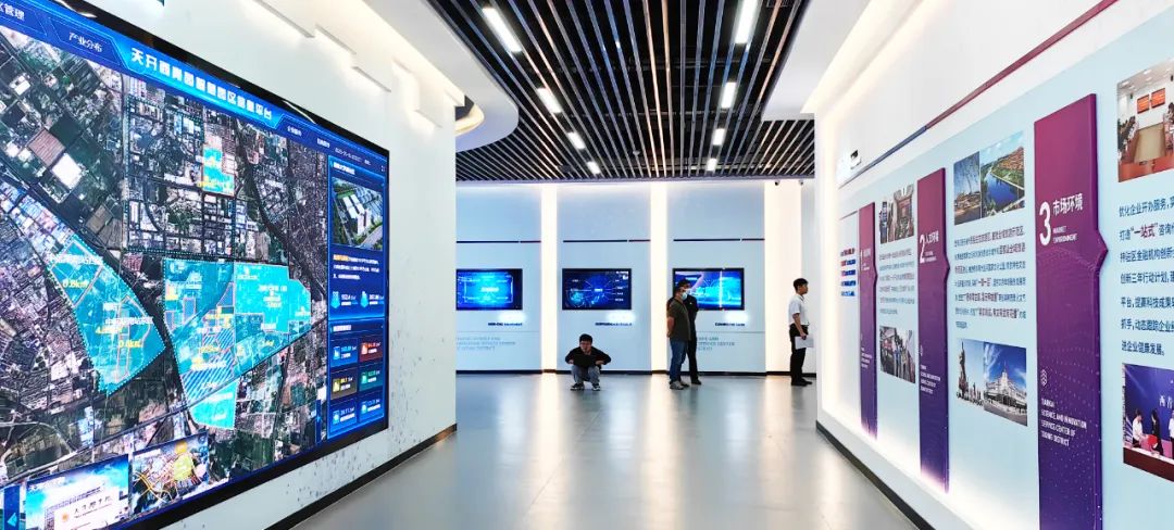 室内设计一所与设计二院等部门通力合作,现场勘察设计、现场服务、全程指导施工,历时39天完成天开园西青园项目的设计实施工作。本次完成室内设计面积10741平方米,包括该地块先导区外景观、主题精神堡垒,楼体及景观标识系统,重点主题展厅、室内展厅、综合服务大厅、路演厅、鸟瞰接待层及配套办公、入驻重点企业——中国医学科学院生物医学工程研究所办公及配套厂房的整体设计方案及施工图设计,设计任务保质保量完成,得到相关领导及业主的肯定及好评。