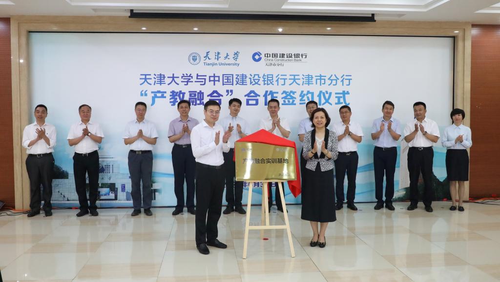 本站讯(记者焦德芳 摄影唐蒙、于福旺)6月30日上午,我校与建设银行天津市分行 “产教融合”合作协议签约仪式在卫津路校区科学图书馆报告厅举行。中国工程院院士、天津大学校长金东寒与建设银行天津市分行党委书记、行长张敏共同为“产教融合实训基地”揭牌。