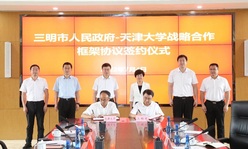 党委常委、常务副校长胡文平与三明市副市长杨国昕代表双方签署了《三明市人民政府、天津大学战略合作框架协议》,在加强教育合作、人才培养、干部培训、科研合作、创新创业合作、决策咨询交流、医学学科合作等方面建立长期稳定的战略合作关系。