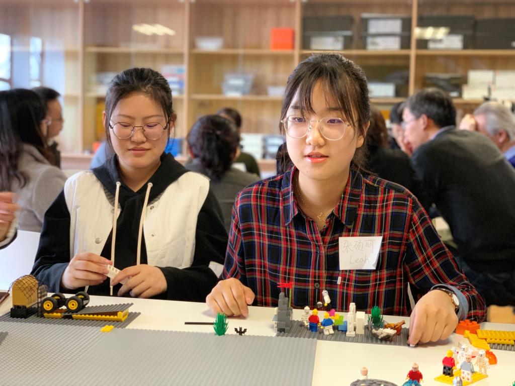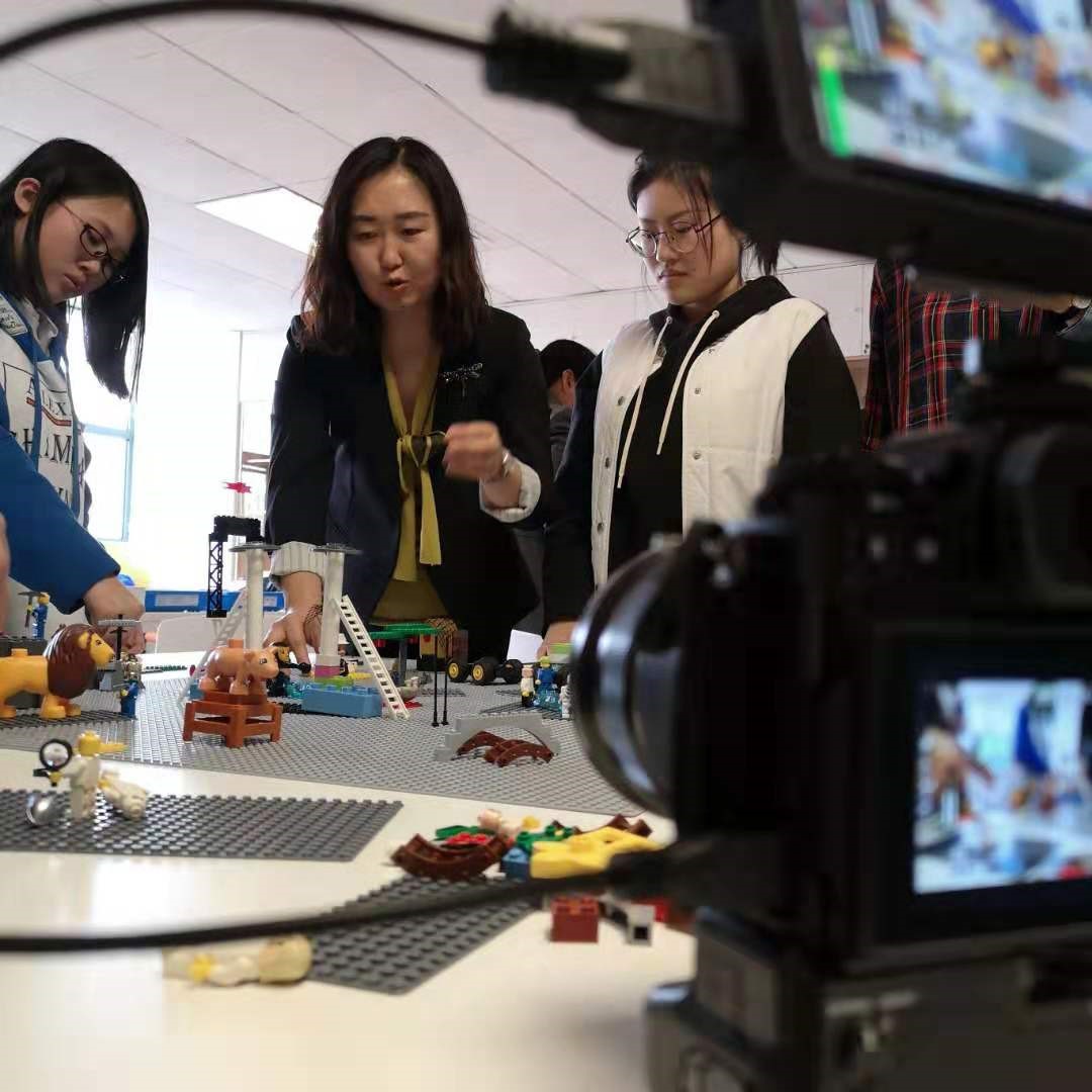 此次体验课由李晓梅老师、史英杰老师联手授课,两位老师是国际认证“乐高®认真玩®”(方法)教练。课堂邀请了8位老师和IDBE班8名同学共同参与,分成两个小组开展学习。课上展示了一种崭新的认知方法,通过搭建乐高积木、提问、辩论,获得“无中生有”的新认知。通过搭建“我们心中的好老师”、“什么是创新精神”等情境概念,催生学生的抽象思维,每个人搭建和讲述自己的模型与故事,再形成团队的搭建和故事。在这种全新的教学模式下,积木模型作为个人和团队认知的“过渡客体”,连接搭建者内在心理与外在世界。