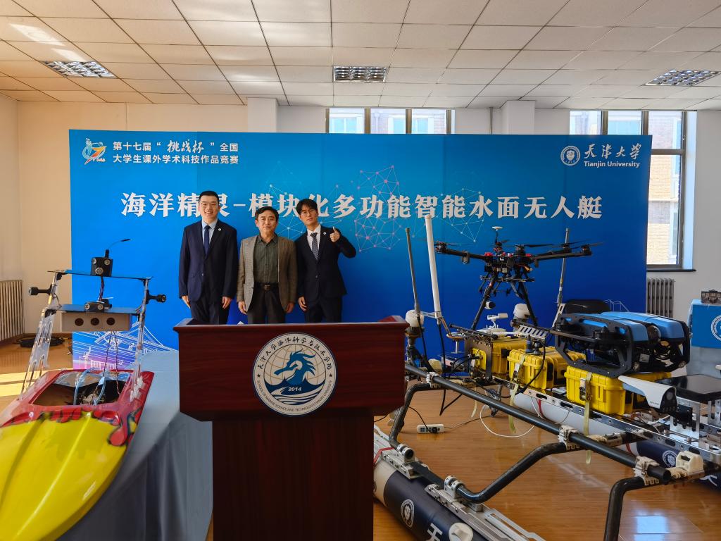一等奖项目《海洋精灵-模块化多功能智能水面无人艇》由海洋学院张安民研究员和常帅老师指导,学院硕士研究生周健、朱纪翔、李雪伟、陈翔宇、胡英俊、吴美仪、李梦源及本科生刘志远共同完成。该项目瞄准当前市面上大多数无人艇结构封闭、功能单一、运输不便的痛点,探索模块化多功能智能无人艇的设计思路。该作品具有运输方便、拆装布放便捷、能根据业务需求搭载各类传感器等特点,极大地提高了海洋测绘、海洋环境探测工作的效率。